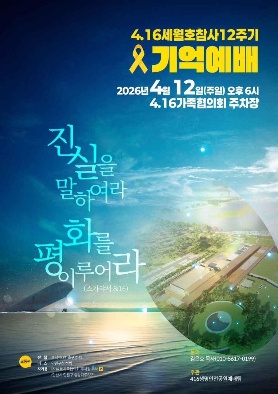 ✝️4.16 세월호 참사 12주기 기억예배 "진실을 말하여라, 평화를 이루어라!"💛