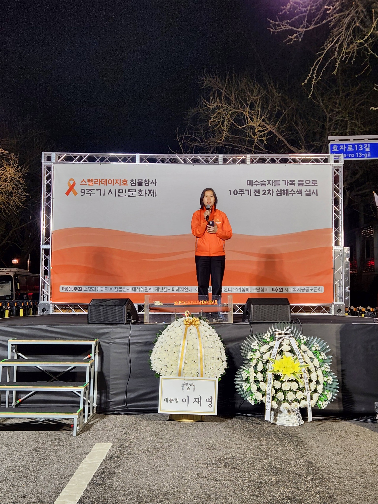 허재용 님의 누나, 허경주 부대표님의 발언을 기억합니다. 말씀해주신 내용처럼 스텔라데이지호 침몰참사의 아픔과 모든 재난 참사 피해자들의 아픔은 다르지 않습니다. 그러니 함께 연대하며 스텔라데이지호 침몰참사의 진실을 밝히는 일은 곧 모두의 안전사회를 위한 길이 될 것입니다.