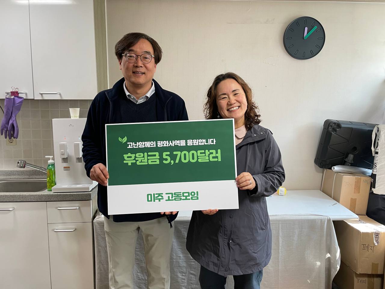 2026년, 미주고동모임에서 큰 후원을 해주셨습니다. 고난함께의 사역에 동참하는 마음으로 힘을 모아주신 모든 분들께 감사의 말씀을 전합니다. 우리가 받은 사랑, 고난 받는 곳에 흘려보내며 평화로운 세상, 올바른 믿음의 교회를 세워가는 일에 잘 사용하겠습니다. 감사합니다. |