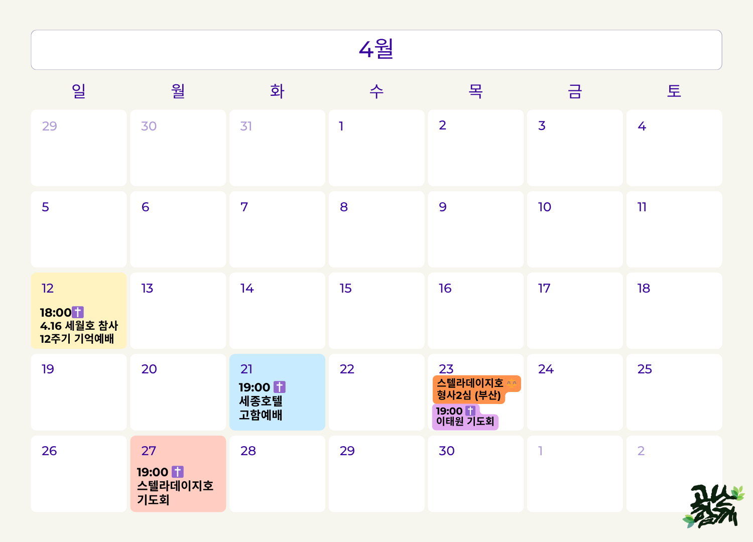 ✝️스텔라데이지호 침몰참사 미수습자 가족과 함께하는 4월 고함예배🧡